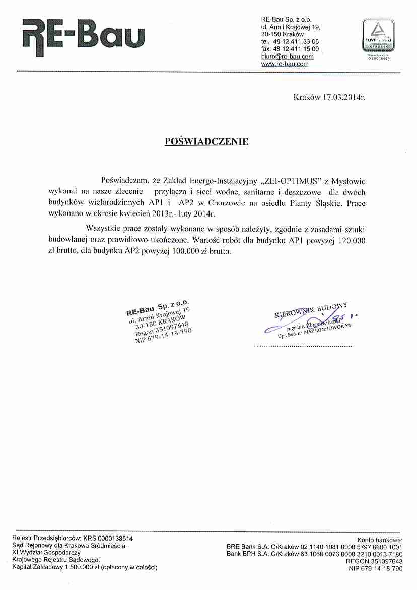 Wykonanie instalacji wodnych, kanalizacyjnych, deszczowych oraz ogrzewania podłogowego w budynku – 157 mieszkań.